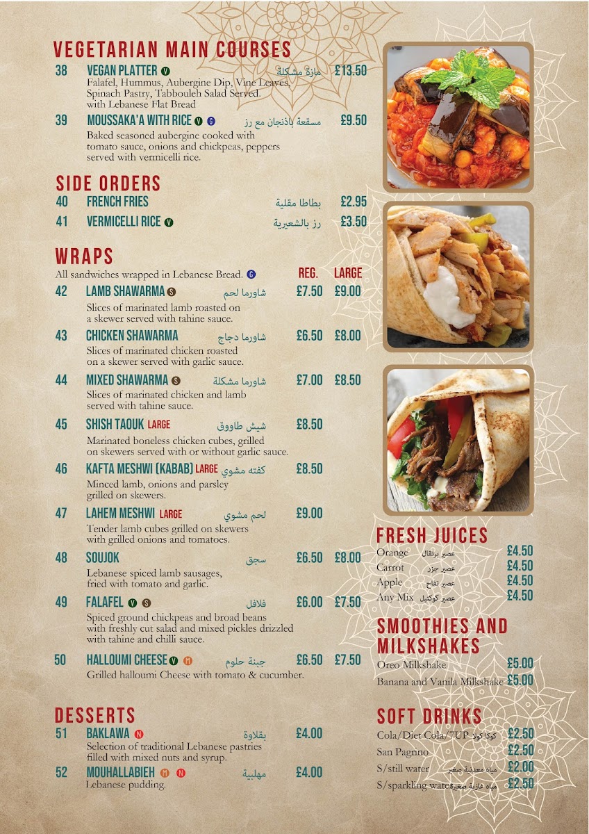 At Mezza House, you’ll find a variety of mouthwatering options on the menu. Start your culinary journey with their Cold Mezza offerings, including the creamy Hommos and the smoky Moutabal Baba Ghanoujs, perfectly paired with fresh pita or grilled bread. For those with a heart for fresh vegetables, the refreshing Tabbouleh beckons, marrying the flavors of parsley, tomatoes, and a splash of lemon. Don’t miss the chance to indulge in a Mixed Grill, where skewered marinated meats explode with flavor, paired beautifully with Vermicelli Rice or crispy French Fries.